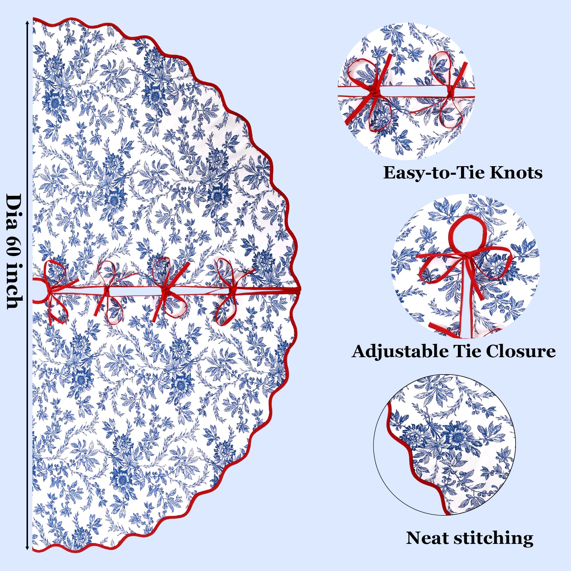 Bring timeless charm to your holiday decor with our handcrafted cotton tree skirts, designed to dress up the base of your Christmas tree with elegance and warmth. Made with soft, durable fabric and available in festive prints, block patterns, or classic solids, these skirts instantly add a polished finish while keeping fallen needles neatly contained.